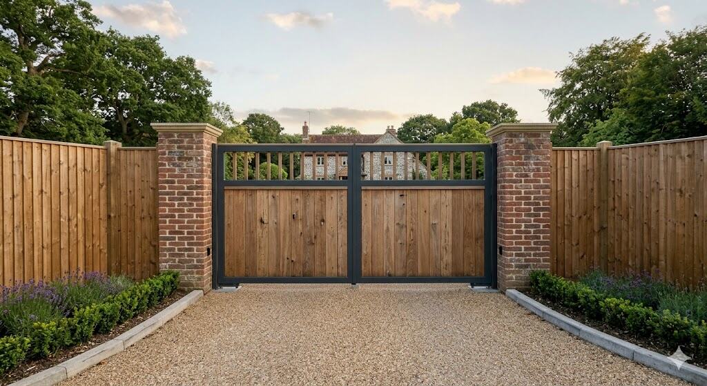 From structural steel frames to premium Iroko timber, we manage the entire build. You get a gate engineered to last and automation that works seamlessly.