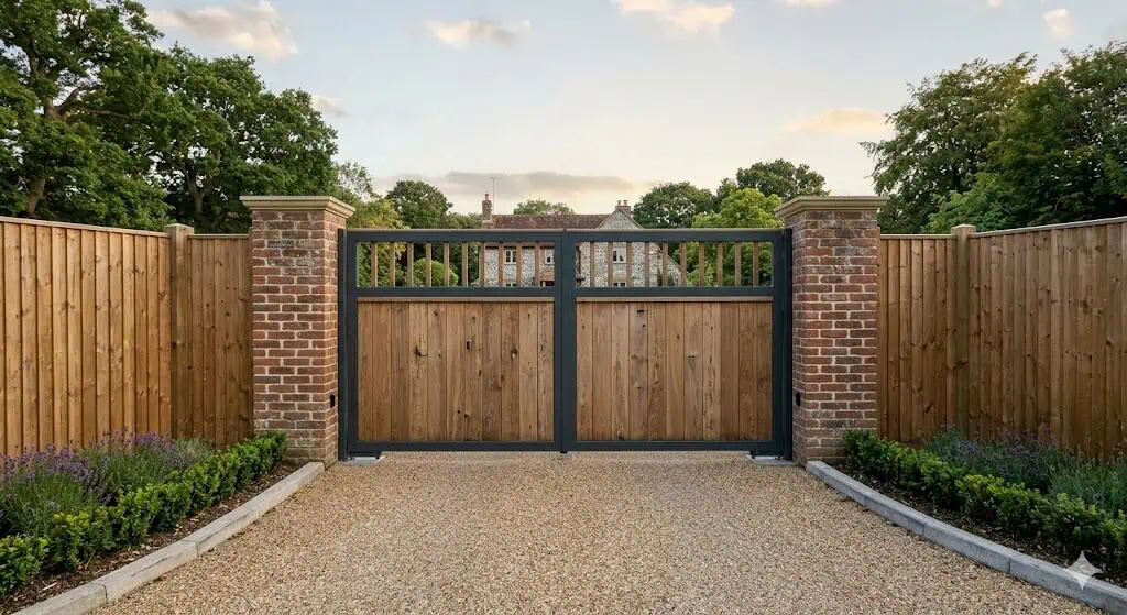 We use premium Iroko and Western Red Cedar, known for their natural resistance to decay. Our workshop team seasons these timbers to prevent movement, ensuring a lasting finish for your Lymington driveway.