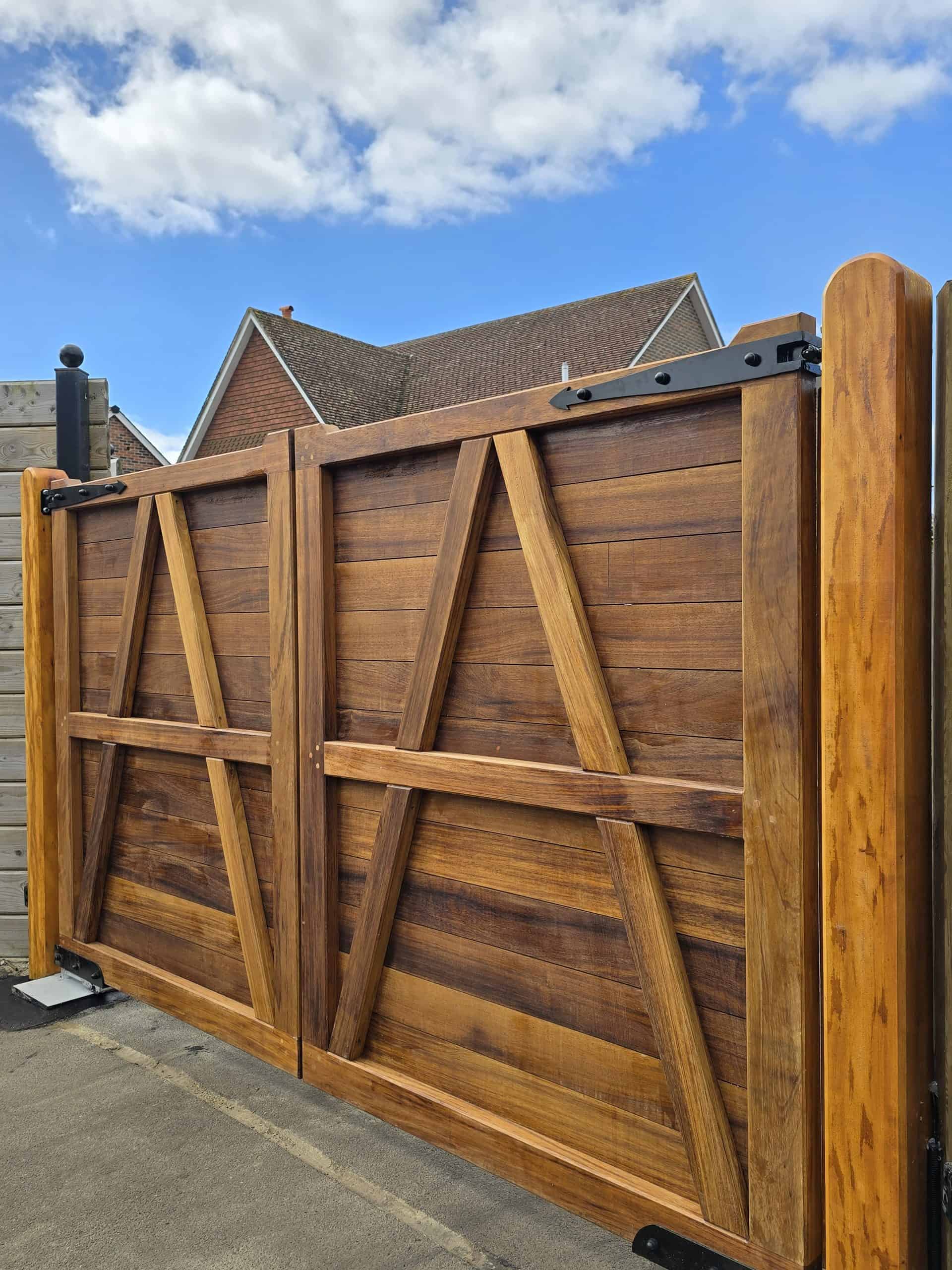 Premium iroko with a refined swan neck line — strong, elegant, and finished to last.